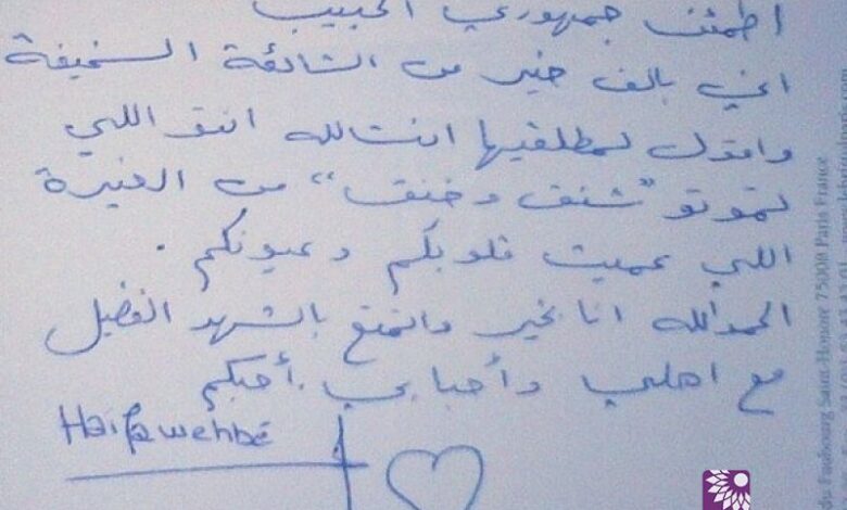 وجاء نفي هيفاء في هيئة رسالة بخط يدها كتبت فيها: "أطمن جمهوري الحبيب..إني بالف خير عن الشائعة السخيفة وأقول لمطلقيها ان شاءلله انتو اللي تموتوا "شنق وخنق" من الغيرةاللي عميت قلوبكم وعيونكم.. الحمدلله أنا بخير واتمتع بالشهر الفضيل مع أهلي وأحبابي .أحبكم".