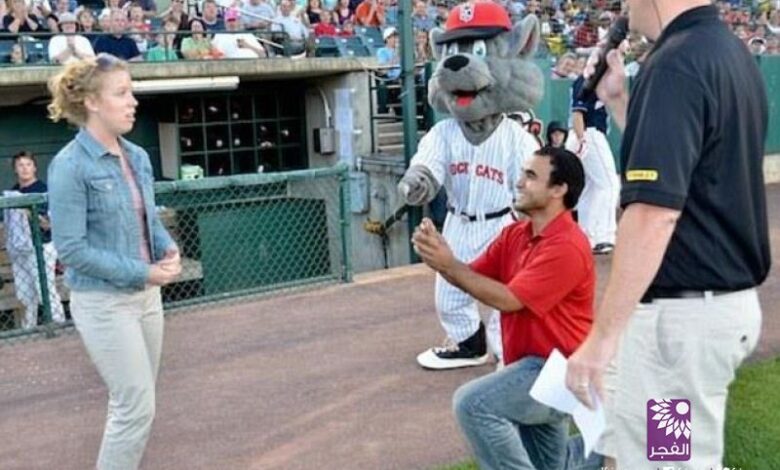 بالفيديو : شاب يتقدم لزواج صديقته في مباراة “بيسبول” فترفض