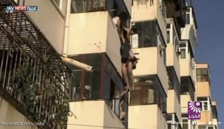 سقطا من خامس طابق فأمسك بهما الجيران