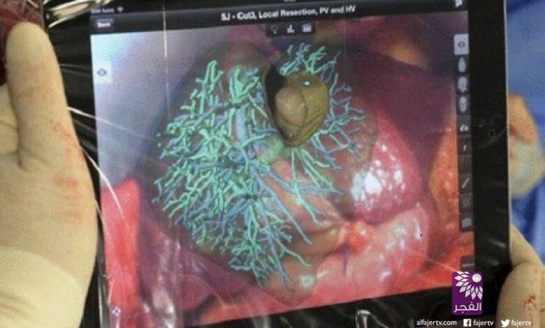 تلفزيون الفجر الجديد|أجرى الجراح الألماني "كارل أولدهافر" عملية استئصال أجزاء مصابة من كبد مريض بدقة بالغة، مستخدما تقنية الواقع المعزز على تطبيق "آيباد"، وبمساعدة الصور ثلاثية الأبعاد، بعد أن التقاط صوراً لكبد المريض بكاميرا الحاسب اللوحي واستخدم التطبيق لصنع خريطة ثلاثية الأبعاد للكبد والمنطقة المحيطة بها، تسهل له تحديد الأجزاء المصابة. لتكون المرة الأولى التي يتم فيها استخدام الأجهزة الذكية في غرف العمليات.