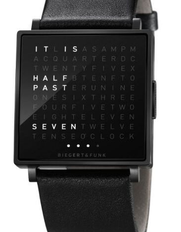 وبالنسبة لساعات اليد فهي لا تظهر الوقت مع أرقام أو عقارب إنما يشار الوقت فيها كنص قابل للقراءة من خلال شبكة مكونة من 110 حرفا.
