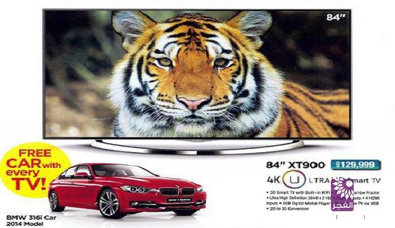 وتعرض الشركة الصينية للإلكترونيات هايسينس Hisense جهاز التلفزيون عالي الوضوح ultra-high definition، موديل “84”XT900″ مقابل 129 ألف درهم، مع سيارة “BMW316i، موديل 2014.