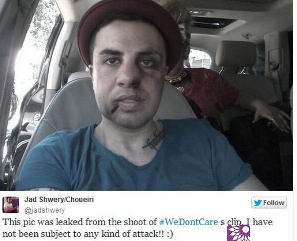 وتداول متابعي المطرب والمخرج اللبناني جاد شويري صورة يظهر فيها وجهه وقد تعرض لبعض الاصابات.