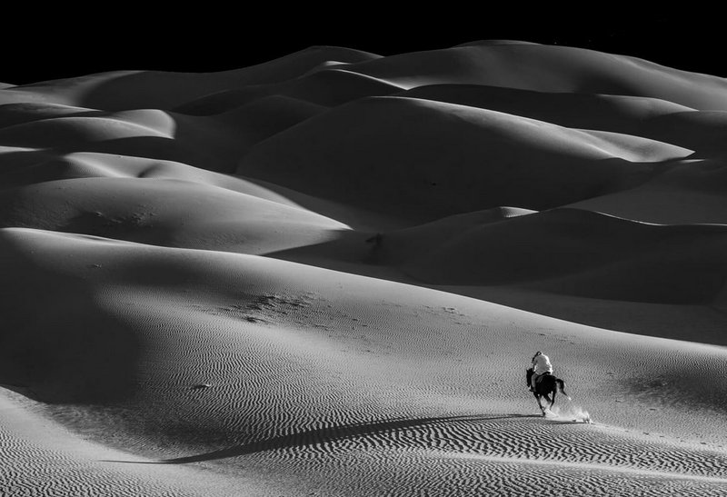 وانطلق رجال القبيلة كالموج الهادر ليلبوا النداء، وقد تقلدوا أسلحتهم، عازمين على أن يأتوا برأس من فعل ذلك بأحد أفراد قبيلتهم، فاندفعوا بأقصى سرعة متتبعين آثار حوافر الفرس، وبعد ساعتين من انطلاقهم شاهدوا على مدى النظر في الأفق الابن أثناء مسيره، ولكنهم لم يتبينوه وظنوا أنه السارق، فزادوا من سرعتهم، وبدأت المسافة تقل بينهم وبين هذا المسكين الذي لم يكن يتخيل أن تصل النذالة بوالده إلى هذا الحد.
