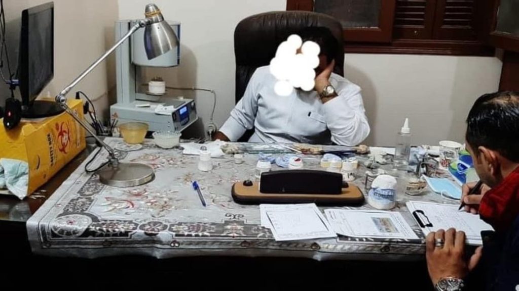 وتمكنت مديرية الصحة بالغربية من ضبط “و. أ” الذي يقوم بانتحال صفة طبيب أسنان بمدينة المحلة حيث يعمل موظفاً بإحدى مكاتب الصحة، وتبيّن أنه كان يقوم بالكشف على المرضى بعيادة أسنان مجهزة.
