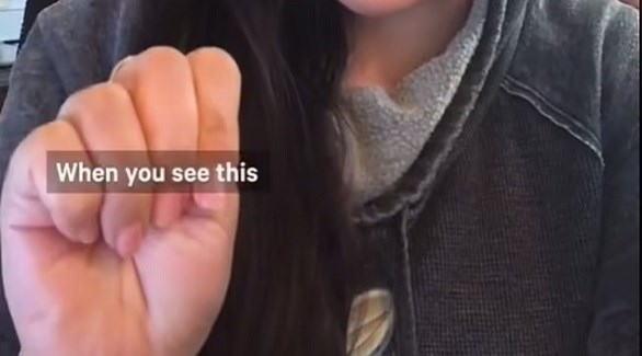 تَظهر الإشارة التي استخدمتها الفتاة على حسابات تيك توك متعددة، بما في ذلك حساب موقع الأخبار “ناو ذيس”، حيث يتم رفع راحة اليد ووضع الإبهام على اليد ثم وضع الأصابع فوق الإبهام وشد قبضة اليد بقوة.