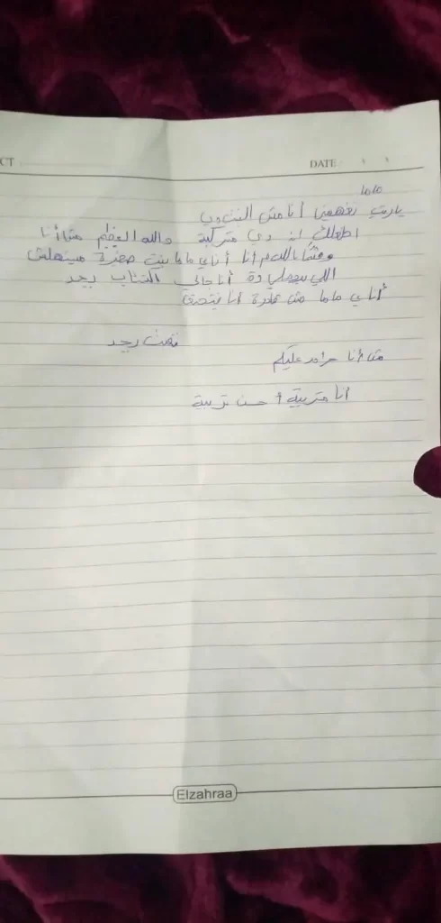 كما، تركت الفتاة رسالة قبل انتحارها لوالدتها قالت فيها: “ماما يا ريت تفهميني أنا مش البنت دي، ودي صور متركبة والله العظيم وقسماً بالله دي ما أنا، أنا يا ماما بنت صغيرة مستهلش اللي بيحصلّي ده أنا جالي اكتئاب بجد، أنا يا ماما مش قادرة أنا بتخنق، تعبت بجد”.