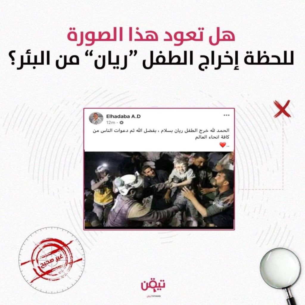 الحقيقة أن الصورة قديمة وليست لإخراج الطفل ريان من البئر.