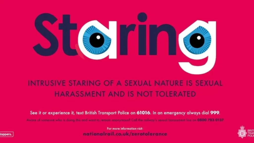 فيما ظهرت 7 ملصقات جديدة في محطات الميترو، تنبه من خطورة “التحرّش”، حتى عبر “التحديق”. إذ تضمن أحد الملصقات العبارة التالية “التحديق ذو الطبيعة الجنسية، هو تحرش جنسي لا يمكن التسامح معه”.