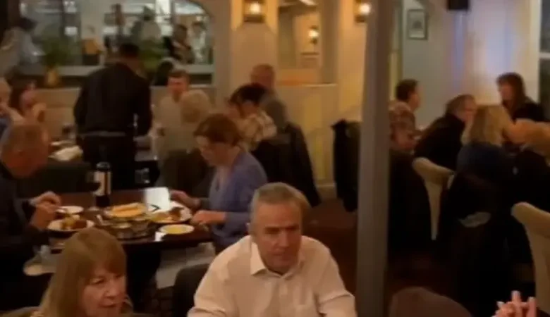 وبحسب ما ذكرته صحيفة “ديلي ميل” البريطانية، يمكن رؤية داينرز يتناول وجبة الطعام بينما يتجول الموظفون بين مرتادي المطعم في مقطع الفيديو، والذي ينتهي بجولة من التصفيق للموظفين.