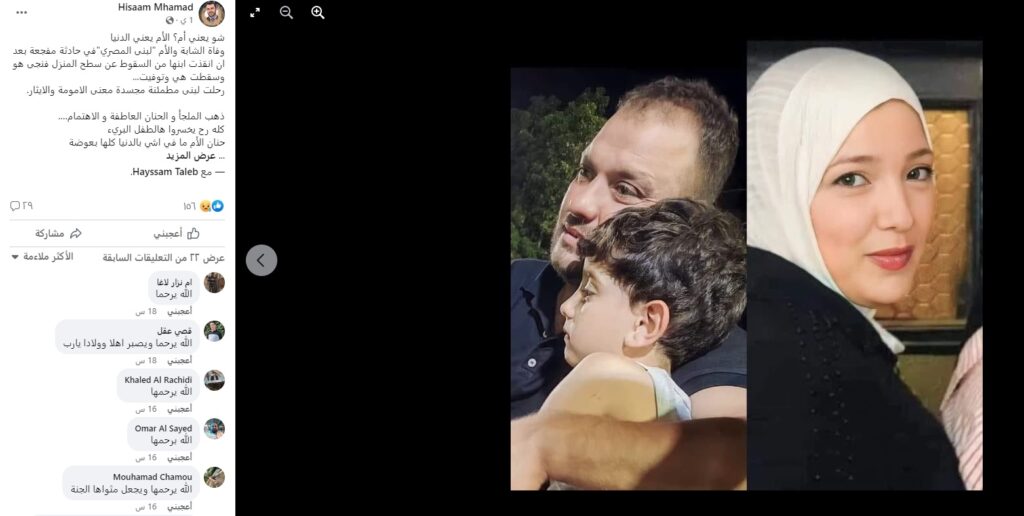 فقد فجعت منطقة ببنين في عكار شمال البلاد، الجمعة، بموت لبنى المصري، إثر سقوطها من أعلى سطح منزلها.