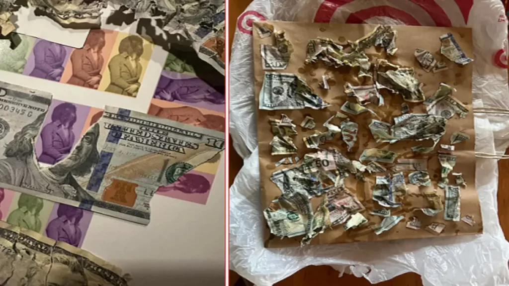 كل ما تم جمعه من الأوراق الممزقة، كان 1500 دولار، أسرعا بها إلى البنك، فأوضح لهما مديره أنه سيستعيد ما تظهر عليه الأرقام التسلسلية بوجهي العملة “علما أن القانون يسمح باستعادة الورقة الممزقة، إذا كان نصفها على الأقل قابلاً للإصلاح”. ثم قالت الزوجة بوجود طريقة فقط لاستعادة بقية المال، هو قيامها وزوجها في الليلة الأولى، بجمع بضع مئات من الممزق، تقيأها سيسيل، ثم وضع الاثنان قفازات بأيديهما، وذهبا بأكياس بلاستيكية في اليومين التاليين إلى فناء خلف للبيت، حيث يقضي الكلب حاجته.