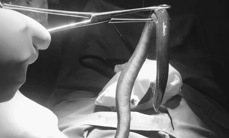 قرر الأطباء إجراء العملية وسرعان ما اكتشفوا ثعبانًا بطول 30 سم في بطن الرجل والذي، كان لا يزال حياً في حالة نادرة.
