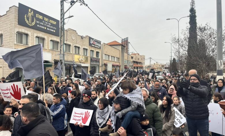 مظاهرة حاشدة في سخنين ضد الجريمة وتواطؤ الشرطة الإسرائيلية