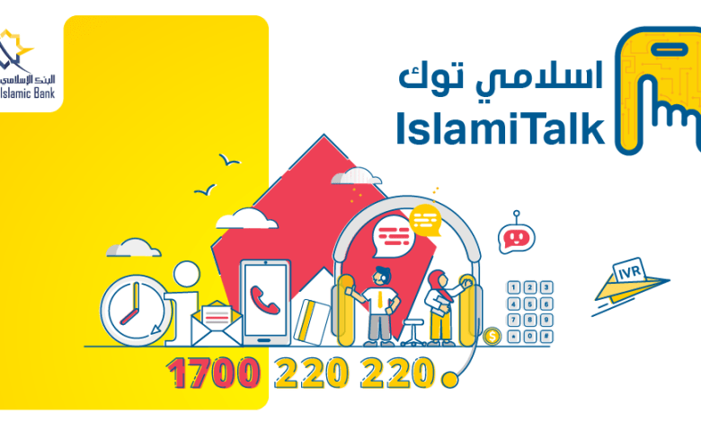 وتعمل خدمة “إسلامي توك“ من خلال نظامٍ صوتيٍ تفاعلي يمكن للعملاء من خلاله أن يتمتعوا بالخدمات المصرفية بمجرد اتصالهم على الرقم الخاص بالبنك 1700220220.