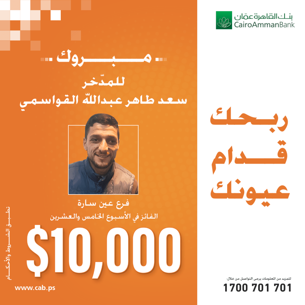 بنك القاهرة عمان يكشف هوية الفائز بالاسبوع الخامس والعشرين بجائزة الــ10 الاف دولار في حملة “ربحك قدام عيونك”