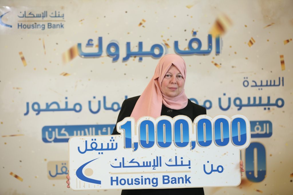 أعلن بنك الإسكان في فلسطين عن نتائج السحب على الجائزة الكبرى السنوية لحسابات التوفير لشهر كانون أول 2021 والتي تبلغ قيمتها مليون شيقل وفازت بها السيدة ” ميسون محمد سلمان منصور” صاحبة حساب التوفير لدى بنك الإسكان / فرع رام الله، وهي ربة منزل من قرية دير غسانة غرب رام الله، كما فاز أيضا 10 فائزين بجوائز ترضية قيمة كل جائزة 10,000 شيقل.