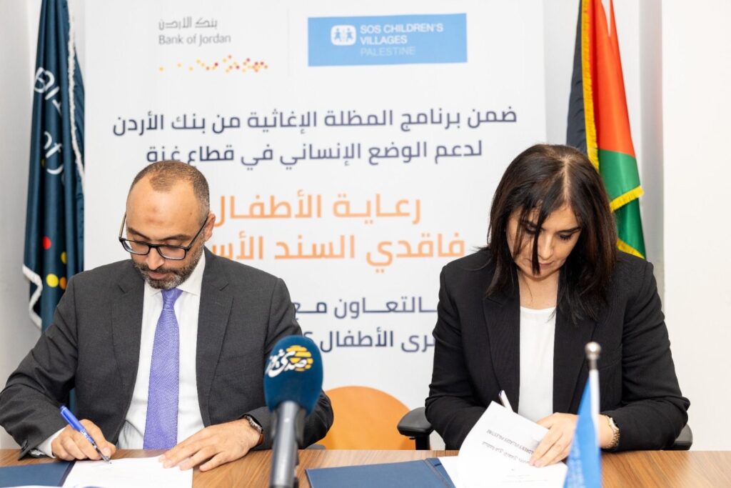 بنك الأردن يوقع اتفاقية دعم جديدة لقرىالأطفال SOS فلسطين ويعلن توسيع دعمه ليشمل كفالة بيت في قرية بيت لحم ومساعدة الأطفال الذين تم اخلاؤهم من قرية رفح