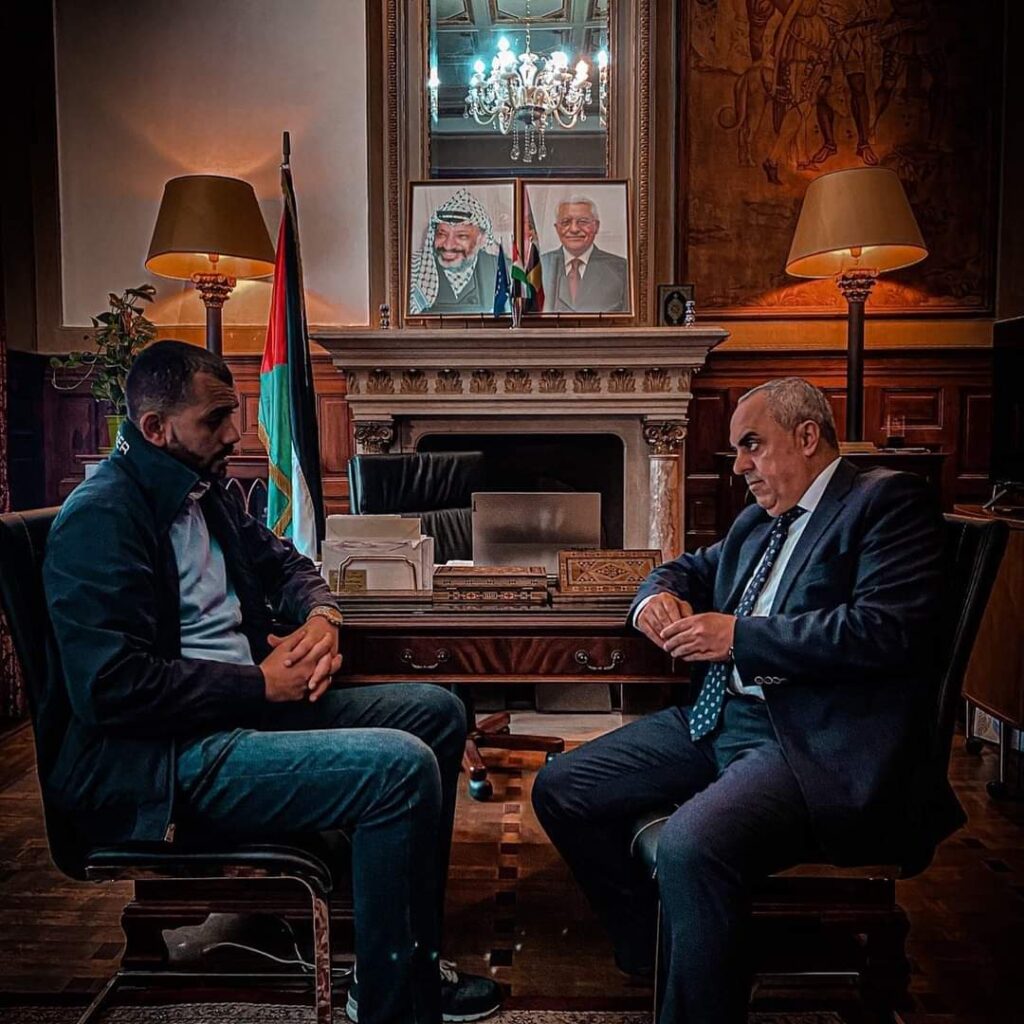 زار نجم هوليوود من أصول فلسطينية”رامي جابر”، والحاصل على لقب” أمير” -حسب البروتوكلات الرسمية الاوروبية – السفير الفلسطيني في بلجيكا عبد الرحيم الفرا”.