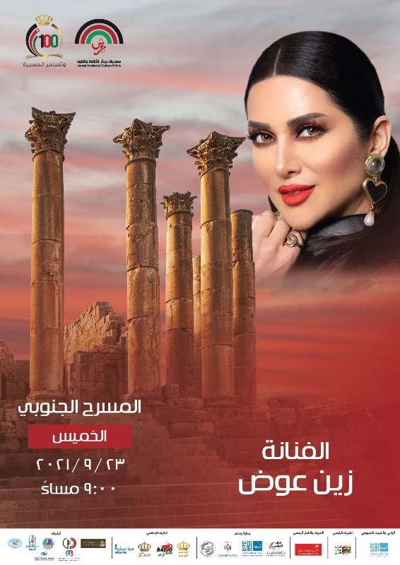 مهرجان جرش هذا الحدث الذي طال انتظاره والاشتياق لمخرجاته وعشاق من فيه وحضوره المميز مع غيابه في ظل جائحة كورونا يعود من جديد في زخم كبير، تواصل “فراشة الغناء الأردني” زين عوض تواصل تحضيراتها لتقديم اطلالتها البهية على جمهور “مهرجان جرش للثقافة والفنون” في دورته الخامسة والثلاثين بحفل يجمعها مع المطربة اللبنانية نجوى كرم مساء الخميس المقبل 23/9/2021، على خشبة المسرح الجنوبي في المدينة الأثرية العتيقة في جرش.
