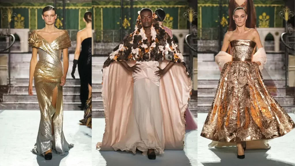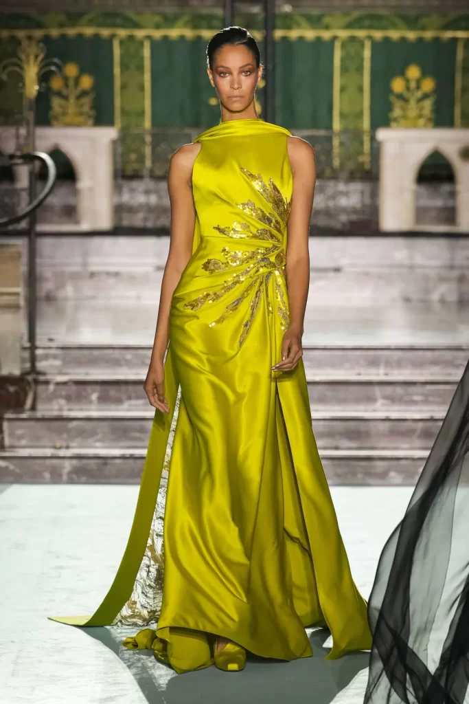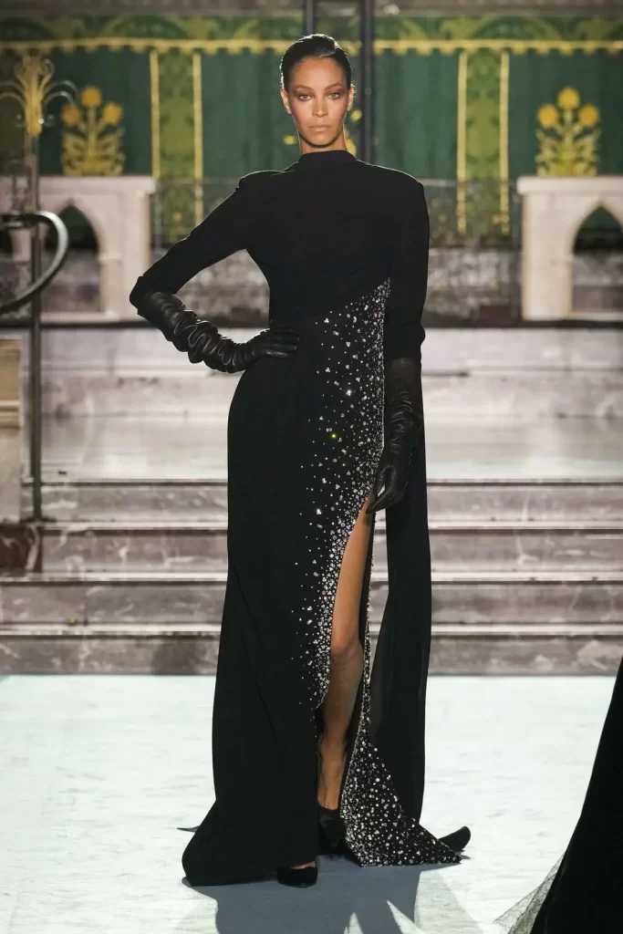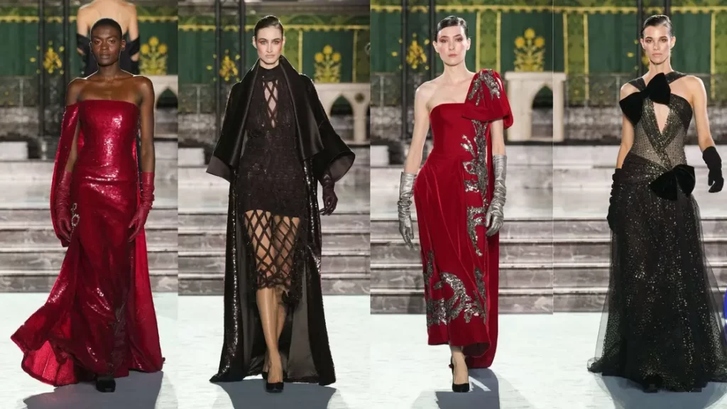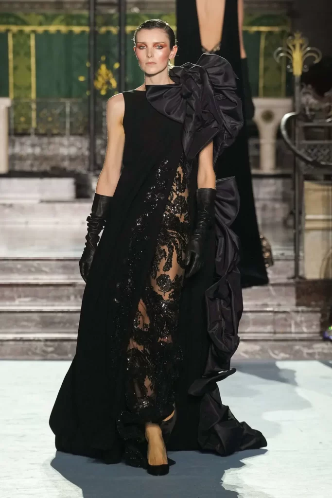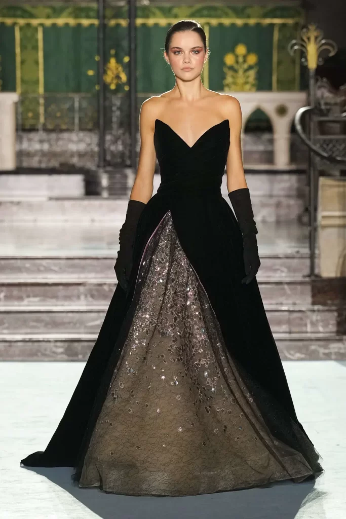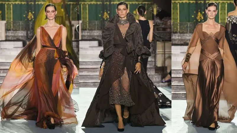 نفخ المصمم جورج شقرا في تصاميمه روحاً دراميّة وأناقة راقية لتجسيد جوهر أوبرا فيرونا التاريخيّة. وهو استحدث في مجموعة التصاميم الراقية الخاصة بالخريف والشتاء المقبلين تجربة غامرة تدعو الجمهور إلى رحلة تروي قصة أنماط حوّلت العرض إلى مسرح كبير تختال عليه تصاميم مصنوعة من الحرير الفاخر، والدانتيل الرقيق، والمخمل الفخم، والشيفون المُنساب هذا بالإضافة إلى خامات فاخرة مُبتكرة يتشابك فيها الجلد الصناعي والتول مع حلقات ذهبيّة، شراريب من الرافيا، مخمل معدني، وتول لامع بالتدرجات الذهبيّة والفضيّة. تعرّفوا على بعض أبرز إطلالات مجموعة دار Georges Chakra للخريف والشتاء المقبلين فيما يلي.