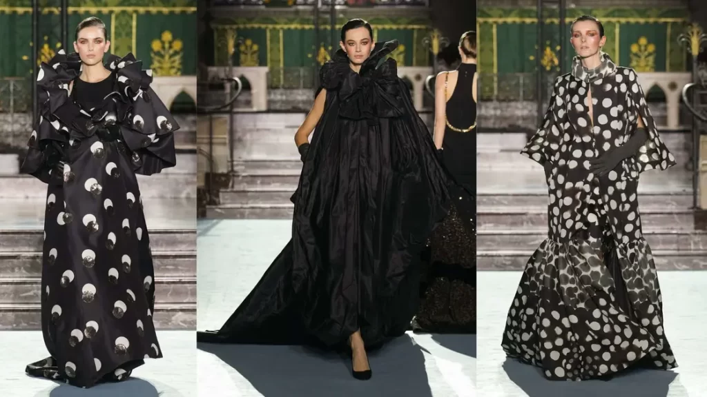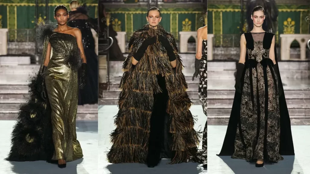 تضمّنت هذه المجموعة معاطف ذات طابع استعراضي يتميّز بفخامته وبإضفائه انطباعاً مسرحياً مع كل حركة. وقد ترافق بعضها مع ذيل عزّز التأثير الدرامي، وجاء بعضها الآخر مستوحى في خطوطه من أناقة خمسينيّات القرن الماضي. استعان المصمم بالتطريز ليزيد من حيوية الإطلالات عبر أنماط متنوّعة تخلق حواراً بصرياً آسراً وتُضيف بُعداً وغنى إلى الأقمشة الفاخرة كما تُزيّنها بخطوط وأزهار تُظهر إبداع العمل اليدوي في الدار.