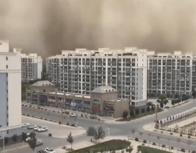 وأظهرت مقاطع فيديو متداولة العاصفة الرملية بارتفاع 100 متر على الأقل، والتي غطت المناطق السكنية والشوارع الرئيسية بالكامل في مدينة دونهوانغ بمقاطعة قانسو بشمال غرب الصين.