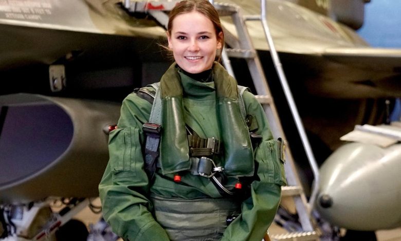 الأميرة أنغريد تحلق بطائرة f-16 خلال تدريب عسكري