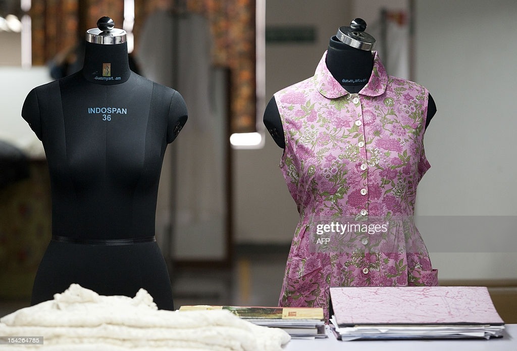 Two mannequins are used to test dress fittings at the April Cornell clothing factory in Noida on the outskirts of New Delhi on October 16, 2012. The April Cornell company exports 50 percent of their clothing and linen production to the USA and Canada, and the rest to European Union countries. India's industrial output picked up pace in August, official data showed, growing 2.7 percent from the same month a year earlier in a better-than-expected but still muted performance. AFP PHOTO/ Andrew Caballero-Reynolds (Photo credit should read Andrew Caballero-Reynolds/AFP via Getty Images)