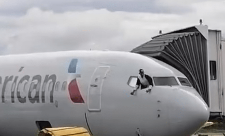 شاهد راكباً يقتحم قمرة طائرة أميركية.. ويقفز من النافذة