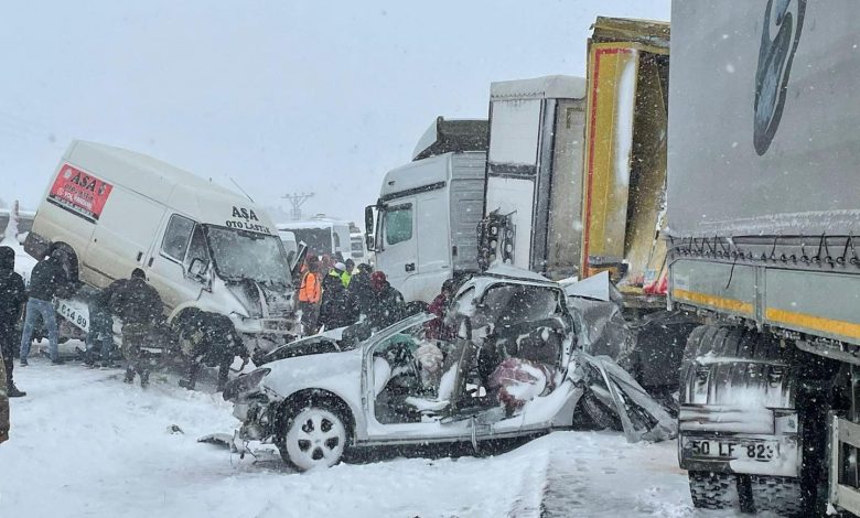 بالفيديو والصور : حادث تصادم كبير بين 24 سيارة في تركيا