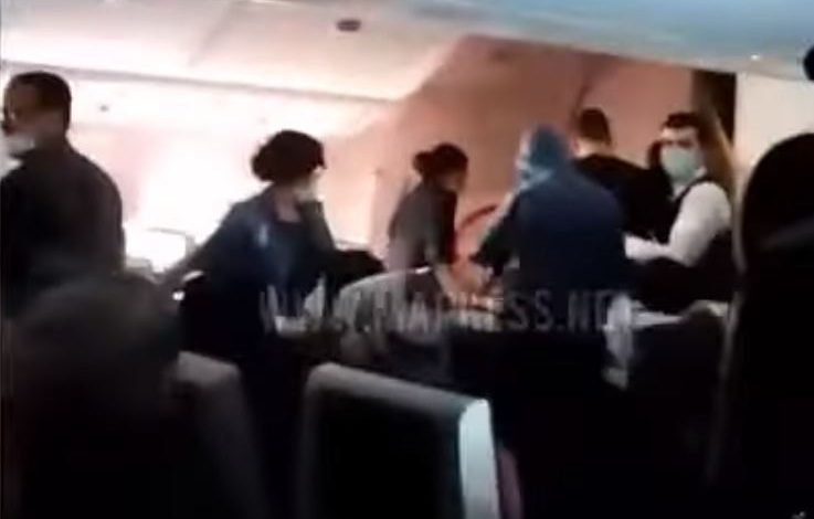 فيديو : مسافر حاول فتح باب طائرة وكاد يتسبب بكارثة في الجو