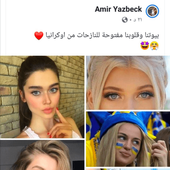 بينما يتابع اللبنانيون وقائع الحرب الدائرة على أرض أوكرانيا وموجات النزوح باتجاه أوروبا، نشر الفنان أمير يزبك صوراً لشابات أوكرانيات وأرفقها بتعليق “بيوتنا وقلوبنا مفتوحة للنازحات من أوكرانيا”، الأمر الذي عرّضه لانتقادات لاذعة من ناشطين على مواقع التواصل الاجتماعي، ما دفعه لحذف المنشور.