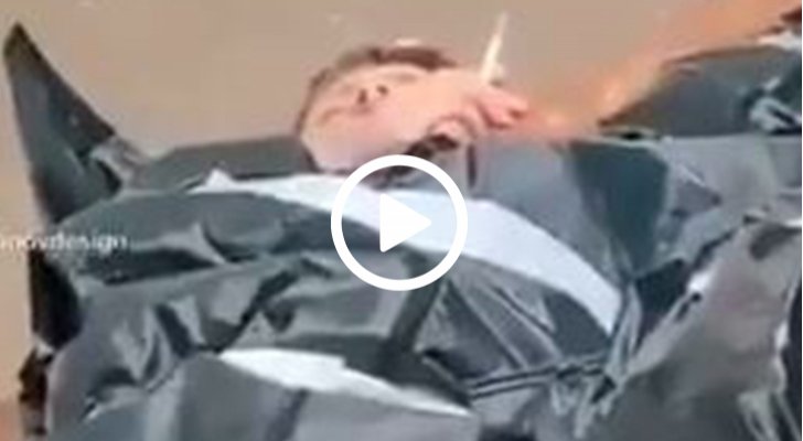 وأظهر المقطع الذي تبلغ مدته 12 ثانية، وأظهر رجلاً داخل كيس أسود وذراعه في الخارج ممسكة بسيجارة مشتعلة يتصاعد منها الدخان، فيما بدا أن اثنين آخرين يرتبان أكياس الجثث خلفه في بناء أبيض وأمامهم سيارة.