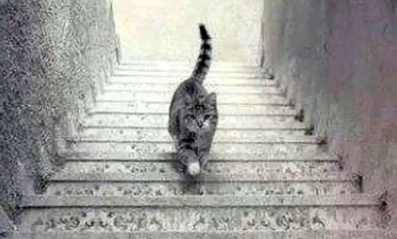 الصورة تحمل خدعة بصرية حيث تُظهر القطة إما تصعد أو تنزل على الدرج.. فكيف تراها أنت؟
