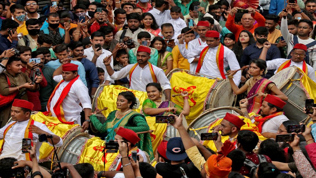 توافدت حشود ضخمة على شوارع أحد أحياء جنوب مومباي لمشاهدة عروض ركوب الدراجات النارية وحفلات الغناء والرقص وعازفي الطبول المشاركين في استعراض”جودي بادوا”، الذي يصادف العام الجديد في ولاية ماهاراشترا الغربية، حيث يرتدي الكثير منهن الزي التقليدي.