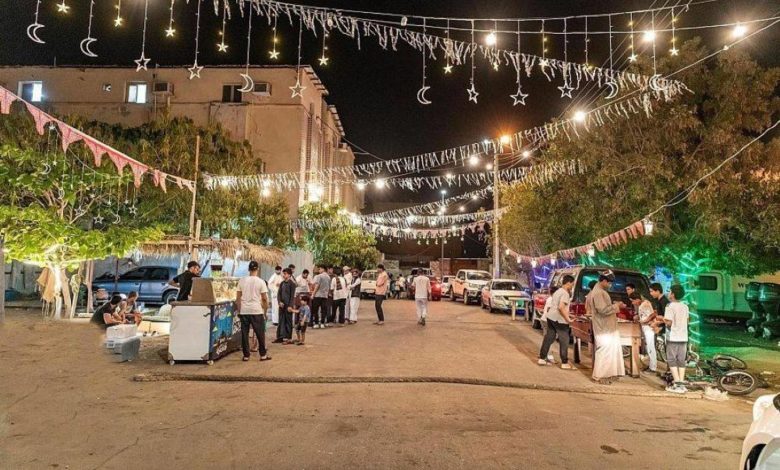 ويقوم أهالي المنطقة بتعليق اللوحات والعبارات الترحيبية بالشهر الفضيل في مداخل الأسواق والحارات، كما تزين المنازل بالفوانيس والأتاريك الجميلة في طابع يرسم الفرح والابتهاج، وسط ممارسة الأطفال الألعاب الشعبية في ليالي رمضان.