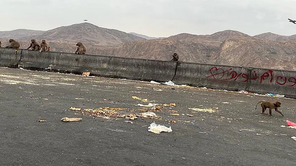 تشهد عقبة شعار بعسير السعودية انتشارًا كبيرًا لقرود البابون بسبب ما يقوم به بعض المسافرين من تصرفات لا مسؤولة، تتمثل في تزويدها بالأطعمة التي لم تسلم من الامتهان لها بسبب سير المركبات فوقها.