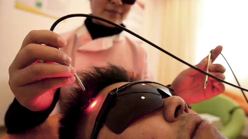 جلسة في عيادية صينية لحث مدخن على الاقلاع عن التدخين عبر تقنية الليزر