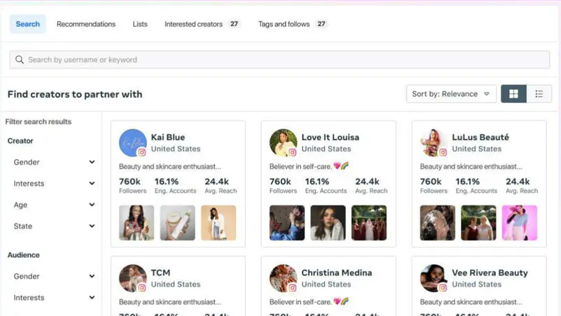 كما يمكنهم استخدام تجربة سطح المكتب داخل Meta Business Suite لتصنيف المنشئين حسب الجنس والعمر وعدد المتابعين والاهتمامات، وفق ما ذكرت المنصة على موقعها الالكتروني.
