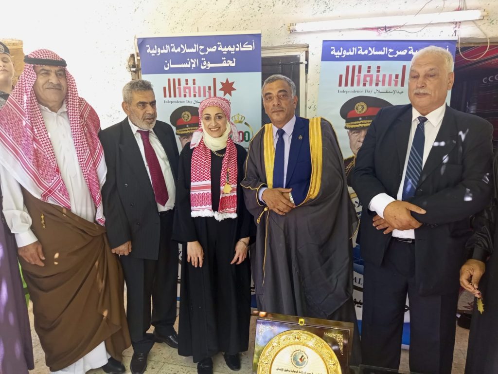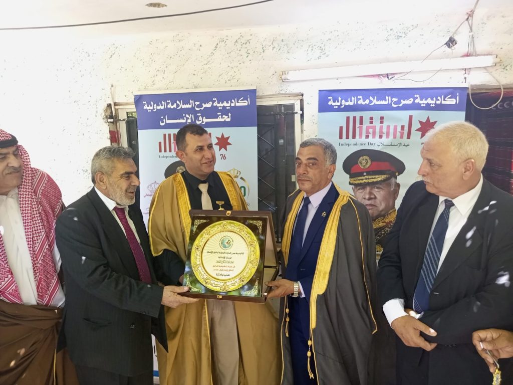 الشيخ منذر الهرش قال شكر أكاديمية صرح السلامة الدولية لحقوق الإنسان والسفير عبدالله العفيشات على تكريم هذا الانجاز الفلسطيني على الأرض الاردنية لسيد البلاد معتبرا ان هذا الانجاز وسام في كل محافظات المملكة ومشاركة الوطن احتفالاته الوطنية وتكريم المبدعين من أبناء الوطن واليوم يكرم الفنان إياد عيسى وفرقته التراثية الفلسطينية التي نعتز بهذا العمل الفني الكبير الذي نعتز ونفتخر به وننتظر المزيد والقادم ..