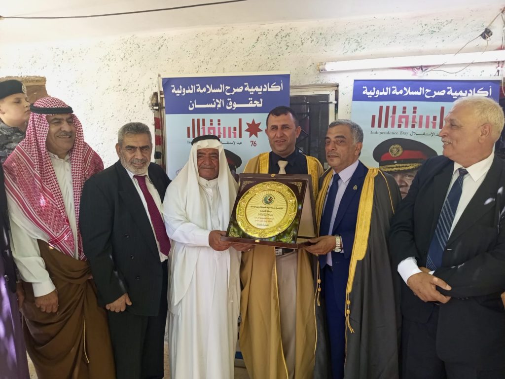 الشيخ مصطفى الزبون نشكر السفير وأكاديمية صرح السلام الدولية لحقوق الانسان حضورها المميز في كل مناطق المملكة وسعدنا بأن نكون في مضارب وضيافة العفيشات الكرام في ناعور الكرم والطيب.