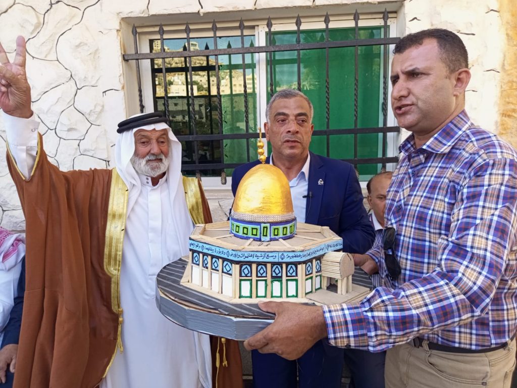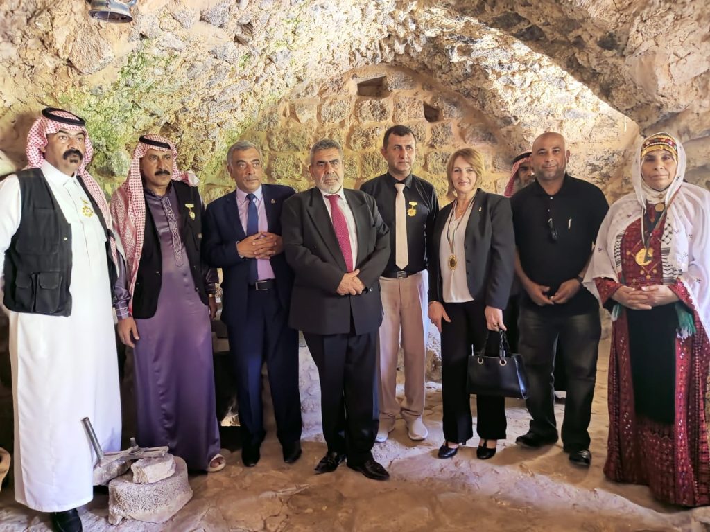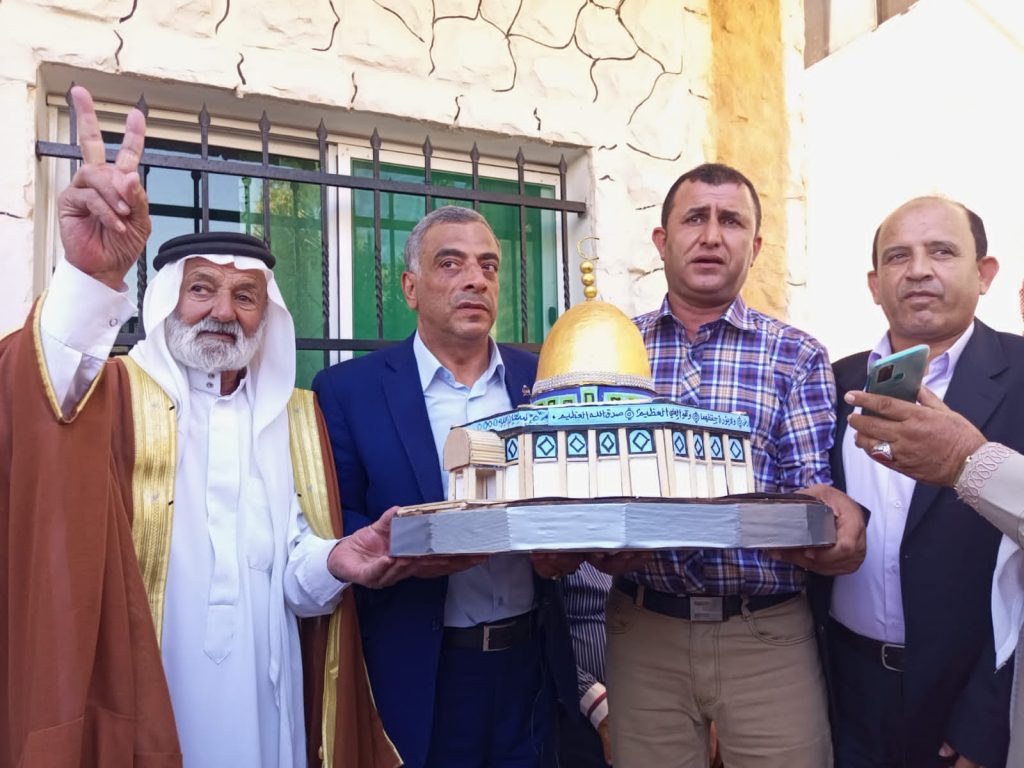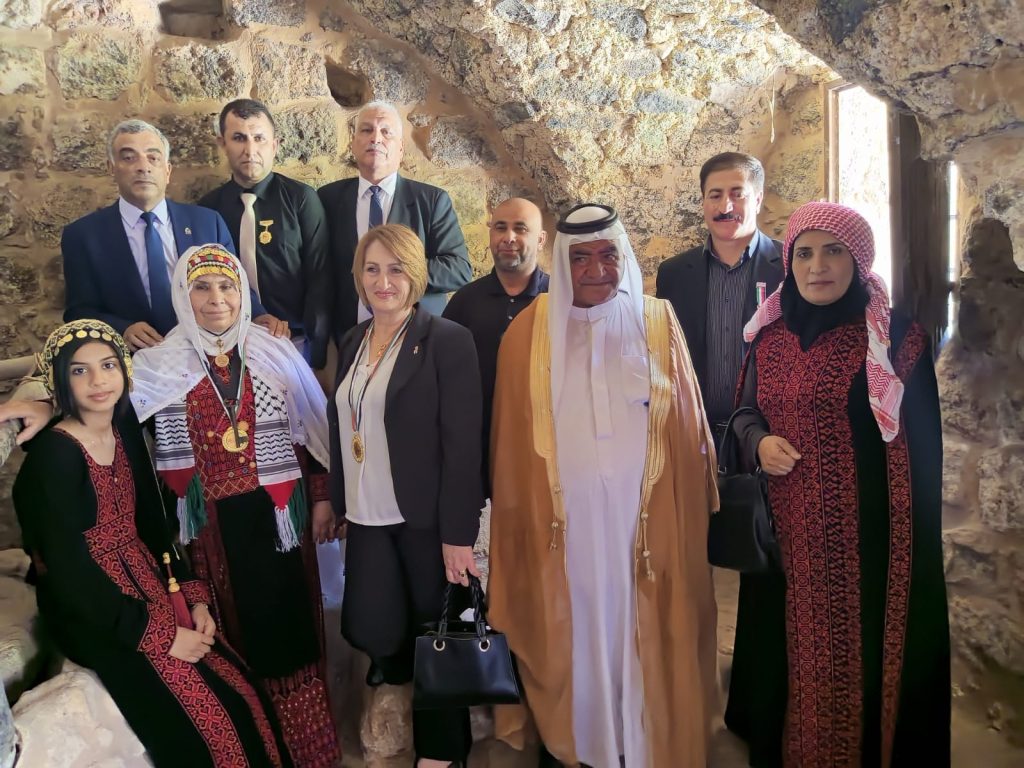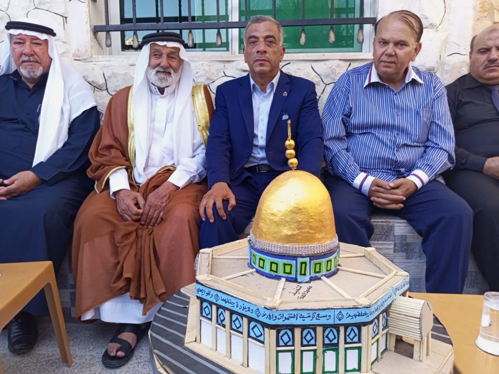 وفي لغة التكريم لمن يستحقون كَّرمَ السفير العفيشات للفنان اياد عيسى وفرقته التراثية مجسم لقبة الصخرة المشرفة تقديراً وعرفاناً لأهل فلسطين والقدس وابنائها المرابطين ولا ننسى دماء وشهداء الجيش العربي الأردني على أسوار القدس لاننا في خندق واحد مذكراً عفيشات بأن الملك عبد الله الثاني دوماً قضية فلسطين حاضرة معه في كافة المحافل الدولية وفي كل مكان تواجد فيه يقدم القضية أمام الحضور إيماناً من التزام الأردن بإتجاه فلسطين .
