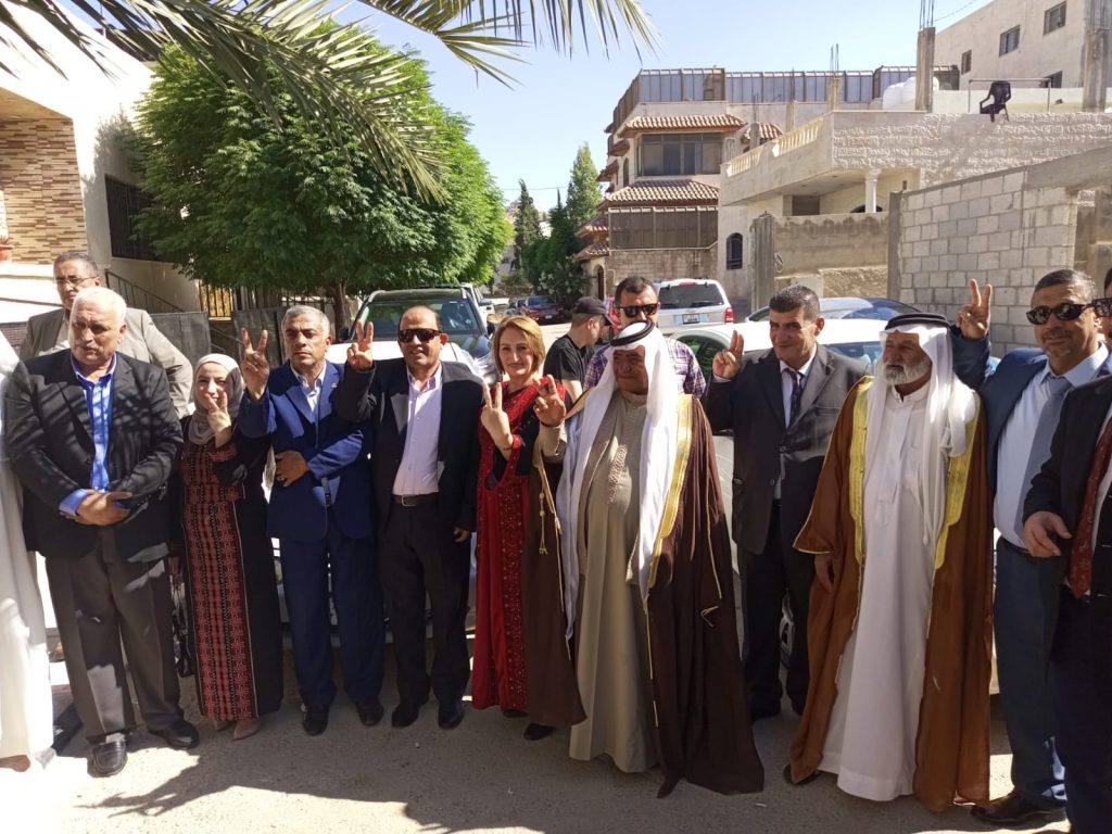 عبد الرحمن النواصره من جرش والشاعر موسى العطوي رحبوا بالفرقة التراثية الفلسطينية وشكروا السفير عبدالله العفيشات بأبيات من الشعر تغنت بفزعتهم وتكريمهم للانجاز ورد عليهم الفنان إياد عيسى باهازيج فلسطينية نالت استحسان الحضور كما تحدث العميد الركن المتقاعد عادل الشيحان العجارمة نحن معكم وديواننا هو لاهلنا في فلسطين مفتوح امام اهلنا وربعنا فلسطين