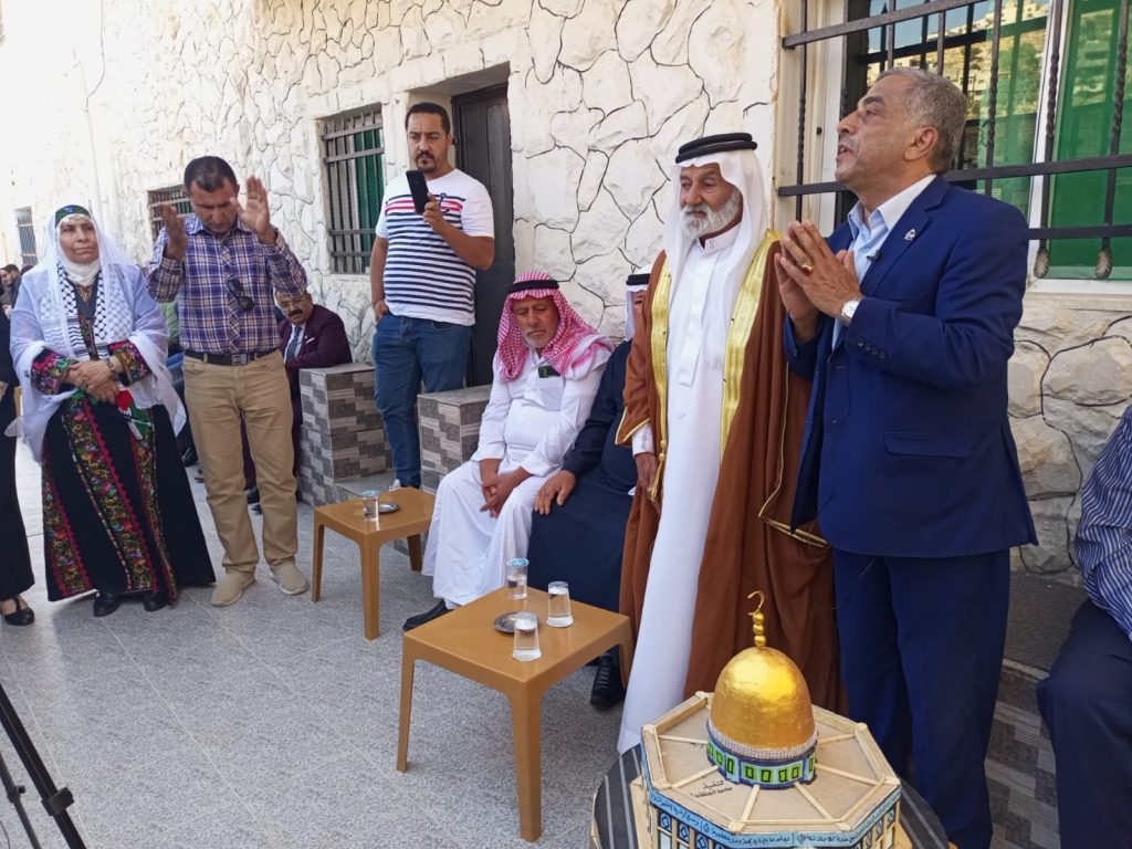 المختار خالد البشر الجبور قال نشكر السفير عبدالله العفيشات على هذا اللقاء الأردني الفلسطيني في منزله العامر وهذا يؤكد محبة الشعب الاردني لفلسطين وأهلها ودعمهم المستمر لصمودهم حتى قيام دولتهم وعاصمتها القدس الشريف ونحن وفلسطين دمنا واحد ومصيرنا واحد ومستقبلنا واحد وسنبقى سياج فلسطين الحامي والمساند والداعم لفلسطين ..
