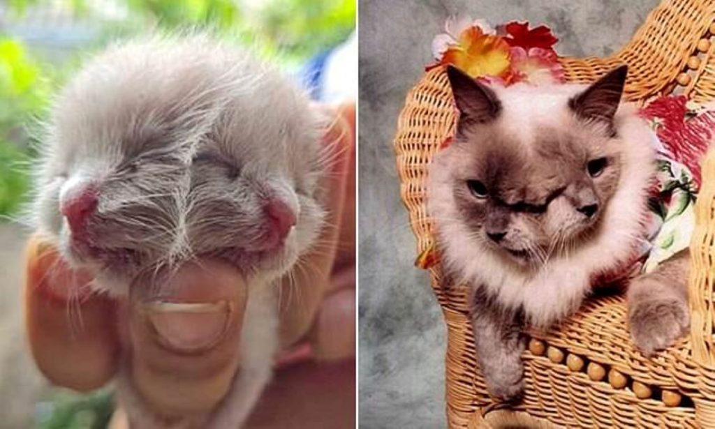 وعادة ما ينفق العديد من القطط المصابة بهذه الحالة في غضون ساعات أو أيام من الولادة، لكن صاحب هذه القط الصغير من أخبر Newsflare أنه يأكلها جيدًا على أمل انها تبقى على قيد الحياة ولا تفارقه.