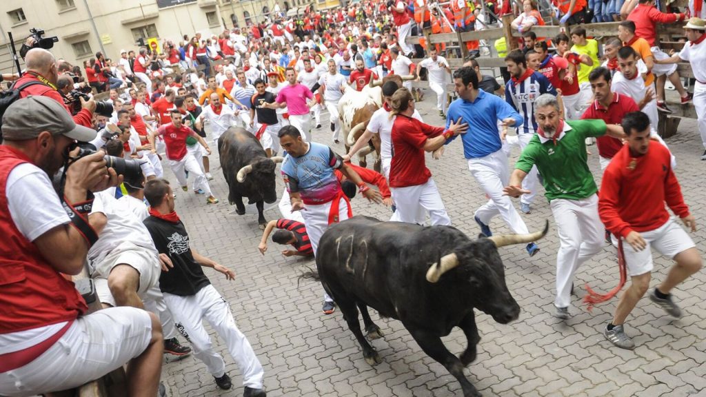 وتحصل أشهر عمليات إطلاق الثيران في سنويا في إطار احتفالات سان فيرمين في بامبلونا شمال البلاد، حيث يحاول المئات الاقتراب إلى أقصى حد ممكن من ستة ثيران خلال سباق يمتد على 850 مترا في شوارع المدينة المعبدة بالحصى.