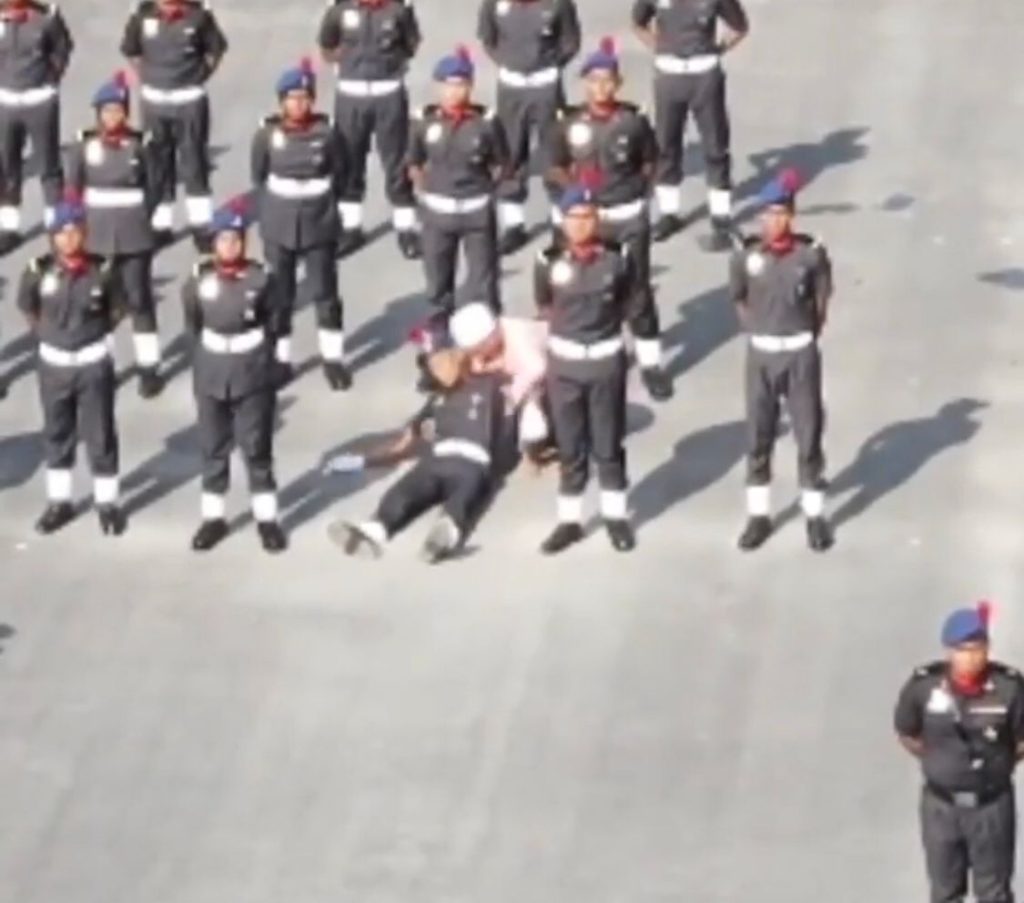 ويظهر الفيديو المتداول فقدان الابن لوعيه خلال عرض عسكري بحفل تخرجه في ماليزيا وسقوطه على الأرض مما جعل الأب ينطلق سريعاً نحو ابنه ويقوم برفعه ومساندته ليكمل وقوفه.
