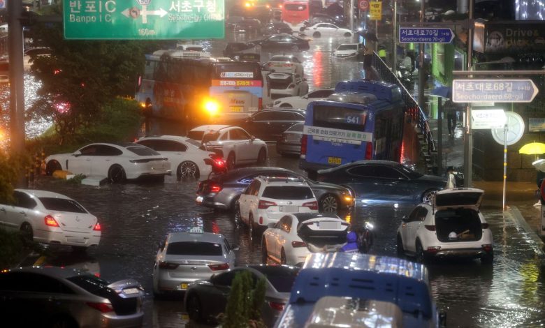 وشهدت العاصمة سيئول هطول أكثر من 300 ملم من الأمطار في جنوبها وبلغت ذروتها 398 ملم في منطقة سيتشو و375.5 ملم في منطقة كانغنام.
