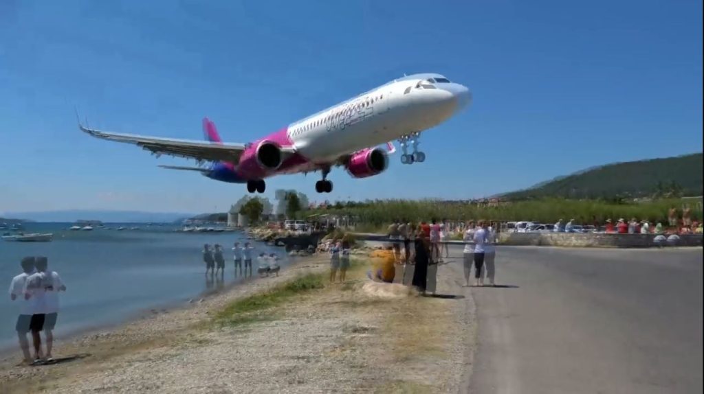 تلفزيون الفجر | انتشرت على مواقع التواصل الاجتماعية لقطات تحبس الأنفاس لطائرة ركاب إيرباص تابعة لشركة Wizz Air تهبط فوق رؤوس السياح وعلى مسافة أمتار منهم فقط، وذلك في إحدى الجزر اليونانية.